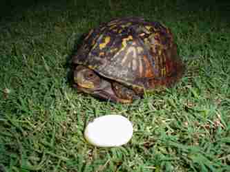 Eastern Box Turtle (Terrapene carolina) female with one egg